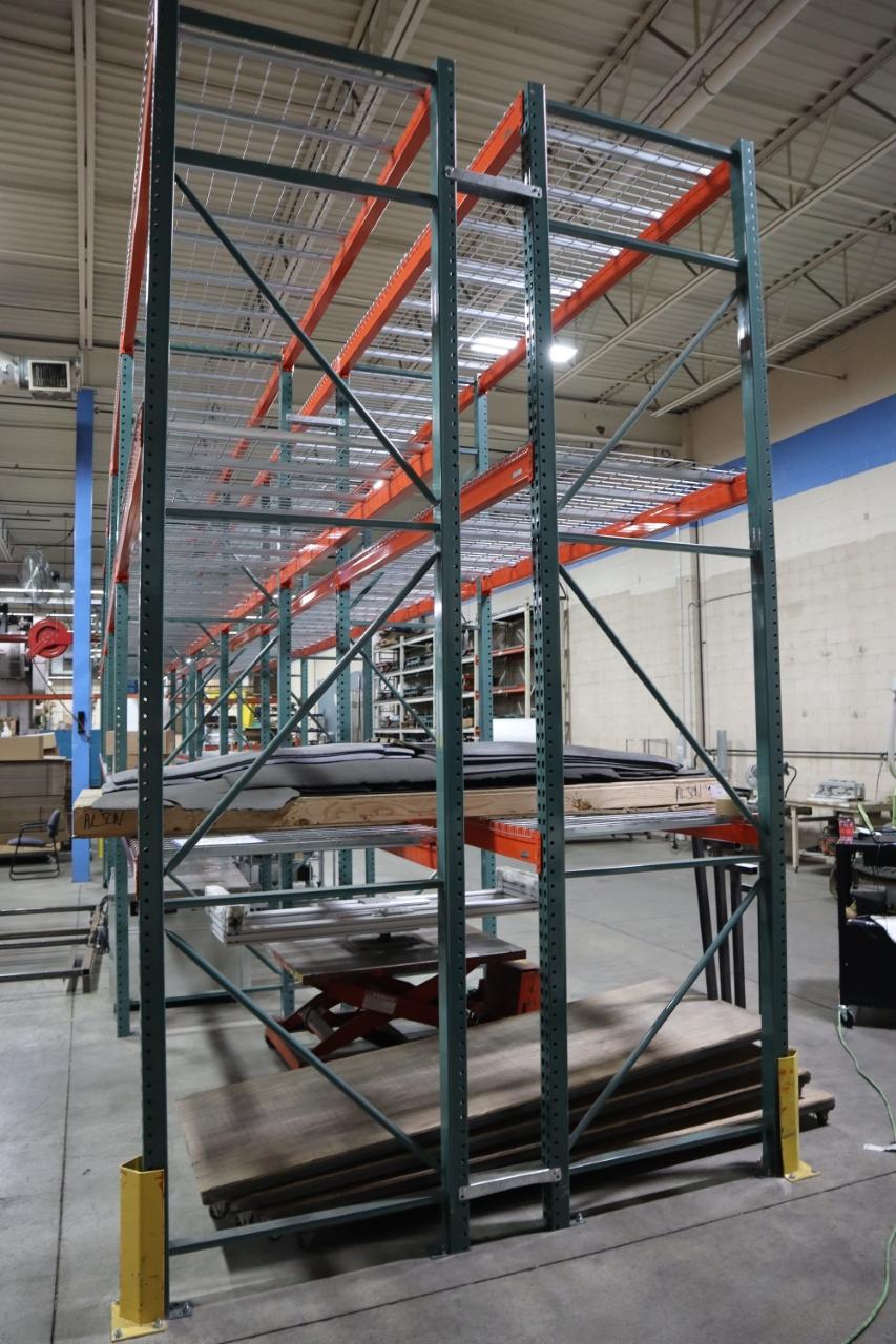 Lot 443: Pallet Racking - (2) Back to Back Bays: (14) 14'H x 42" Uprights, Teardrop Style, (24) 9' Shelves, (8) 8' Shelves, Wire Decking - NO CONTENTS