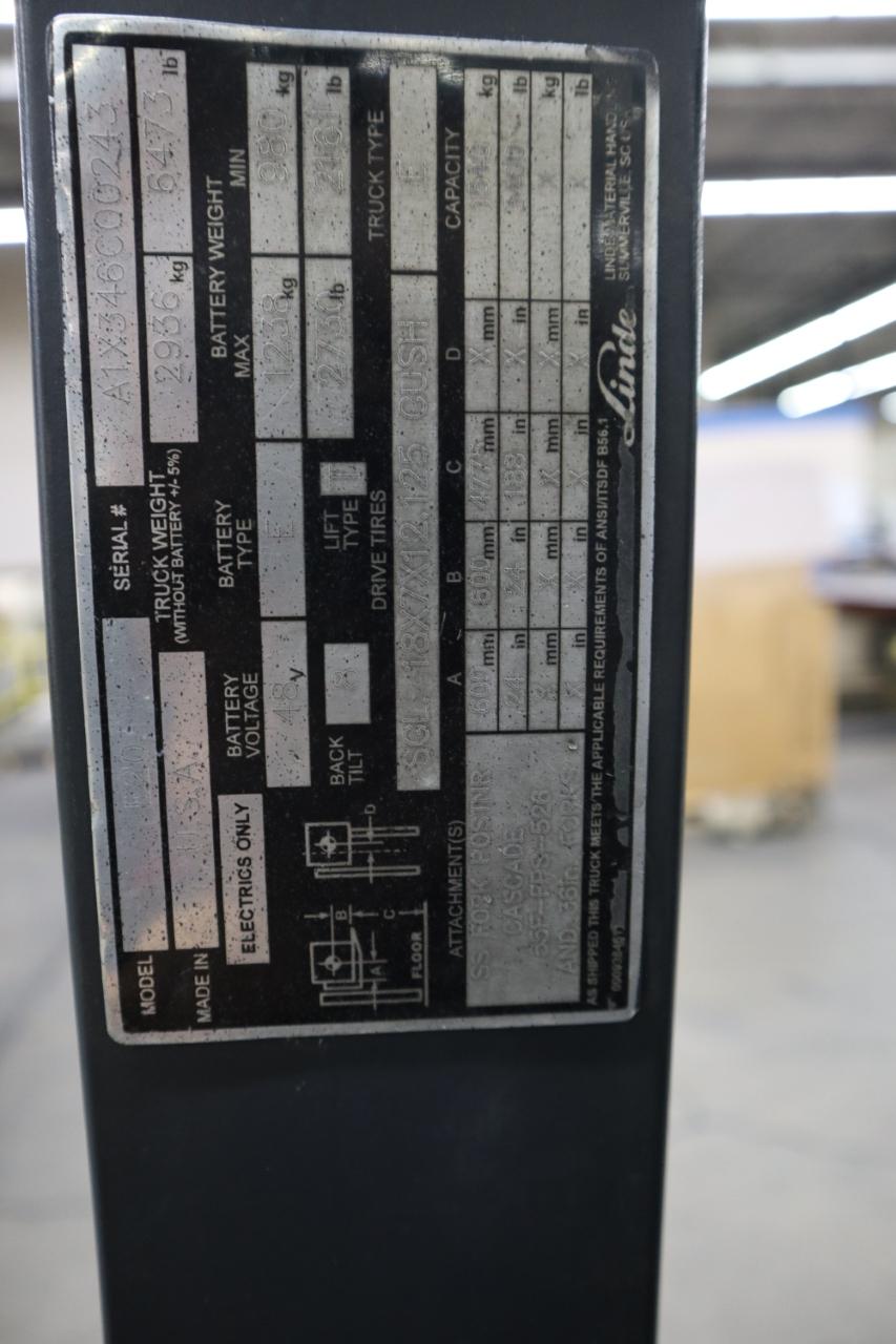 Manufacturer: Linde Model: E20 Year: 2013 Serial Number: A1X346C00243