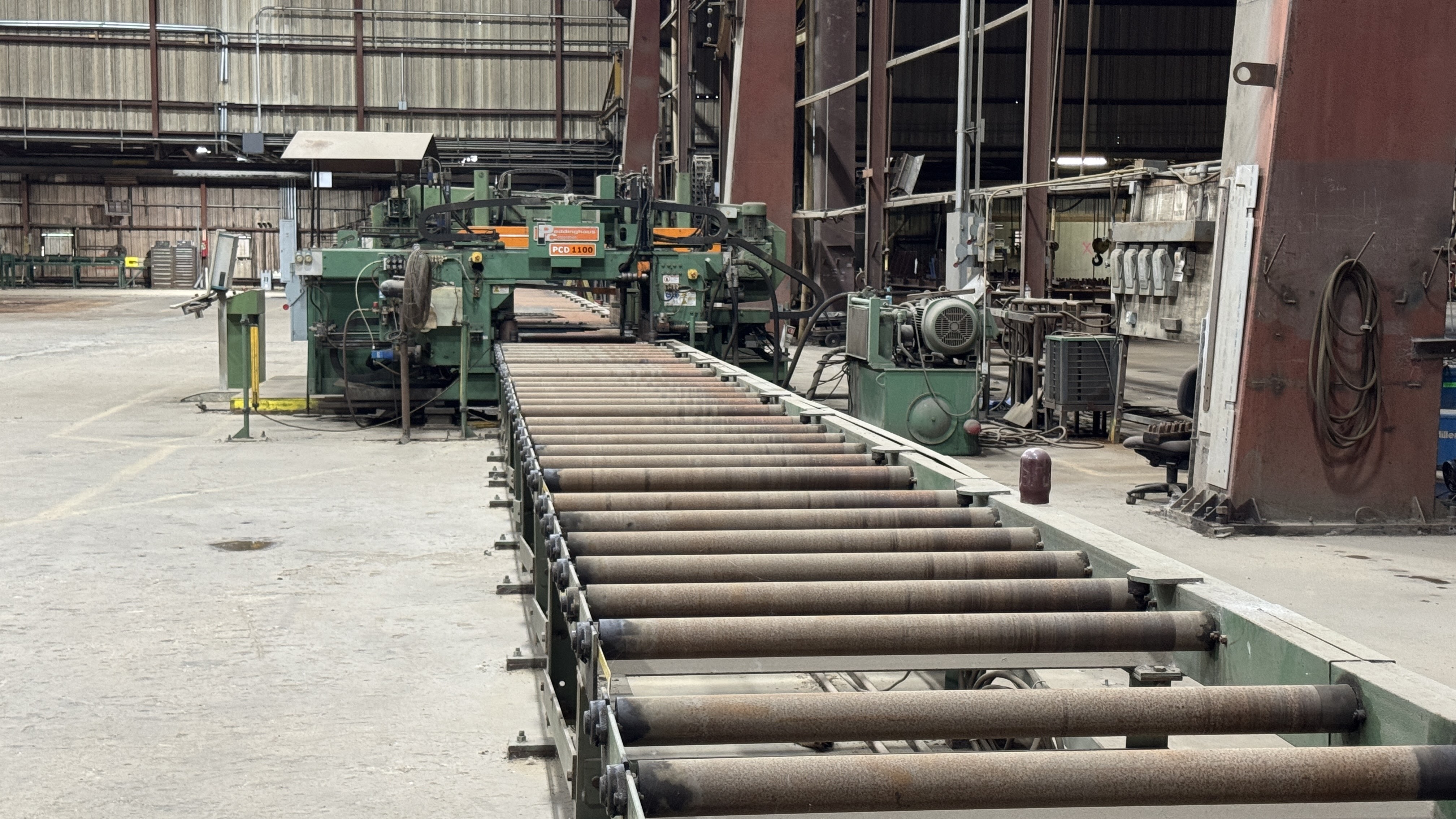 18” X 44” Beam Drill Line with Siemens CNC Control, Peddinghaus 100DG Twin Column Horizontal Bandsaw, Signomat Part Stamping and Roller Feed Measuring System