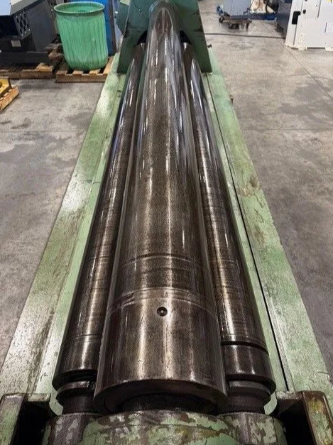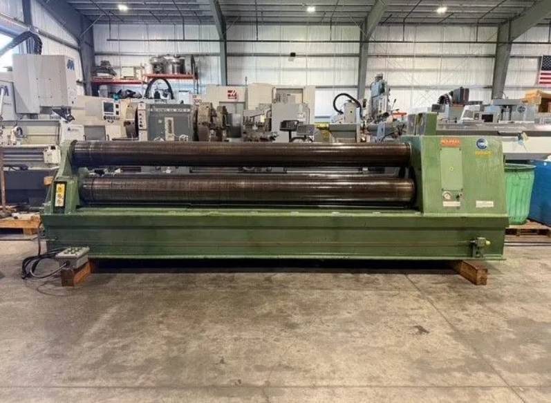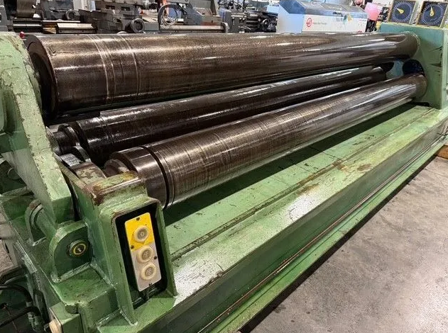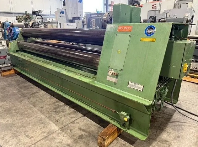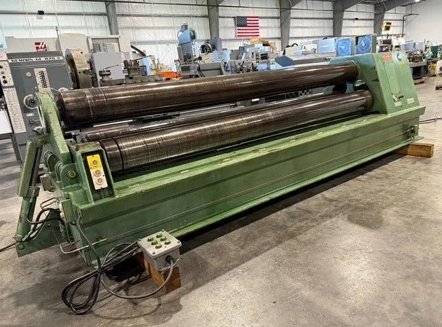 3/8" X 10’ Pyramid Style Plate Rolling Machine with Control Pendant and Hydraulic Drop Arm.