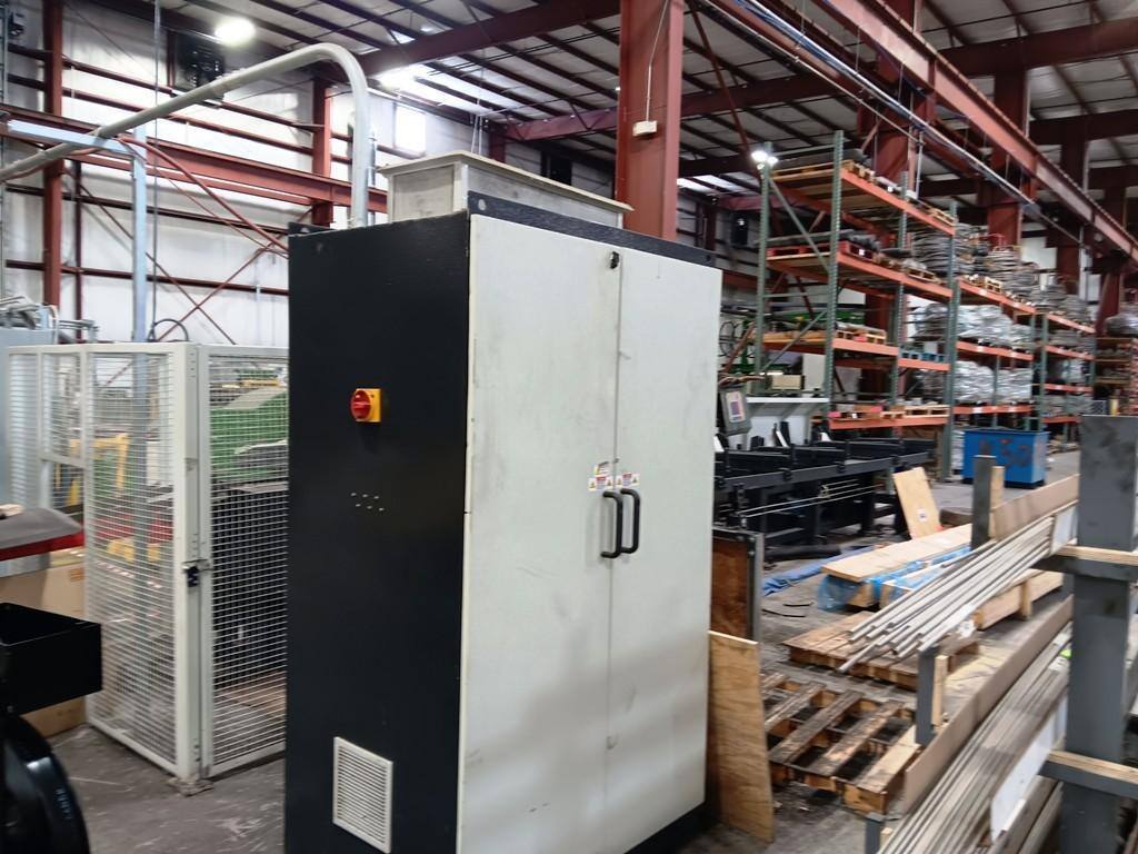7” Capacity Cold Saw with Mitsubishi PLC Controller, Job Monitoring (Cycle Time, Job Duration, Part Count and AMP Load Setting), Material Library with US Steel Grades, Bar Feeder with Roller Bed & Material Grip Feed Carriage, Mist Exhaust System and Chip Conveyor.