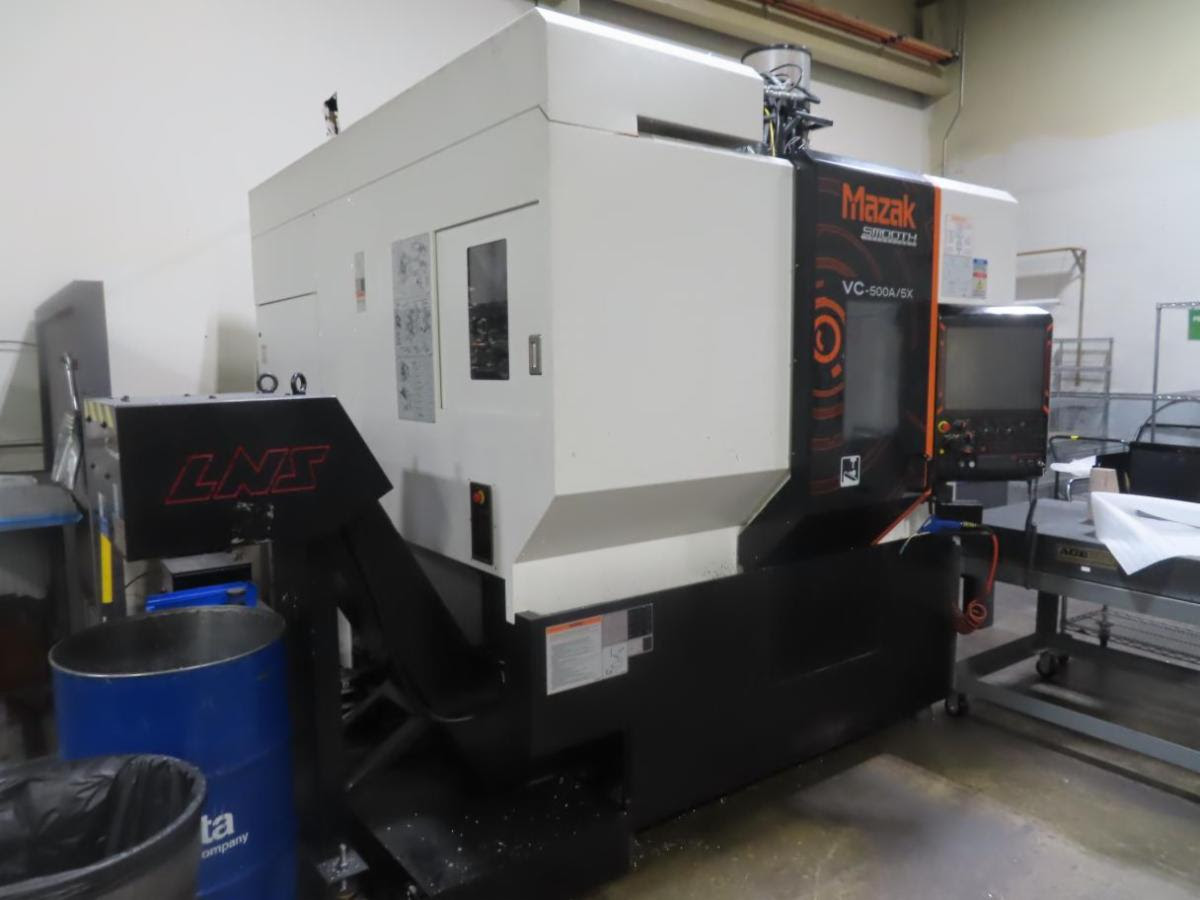 21.85” X 19.88” X 20.08 Vertical Machining Center with Mazak Smooth Technology Control, Trunnion Style Rotary / Tilt Table, CT40 Taper, 60 Slot ATC, Renishaw Probe System Probe in Spindle), Mist Collector, Oil Chiller, Scrap Conveyor and High-Pressure Coolant Thru Spindle.