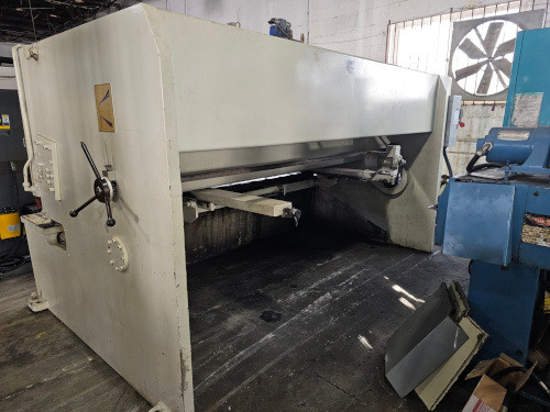 ½” X 10’ Hydraulic Shear with ENC100 Controller, 72” Squaring Arm, 39” Capacity Backgauge, Quick Set Blade Gap Adjustment, 4 - Edged Blades and Transfer Balls on Table.