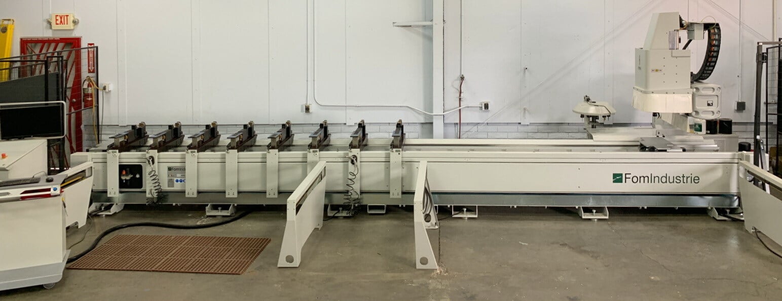 350” X 43” CNC Router with Omega 200 Touchscreen with FOM CAM 3D and Geometrics, 12 Position Toolchanger, (8) Pneumatic Vises and Pendular Machining.
