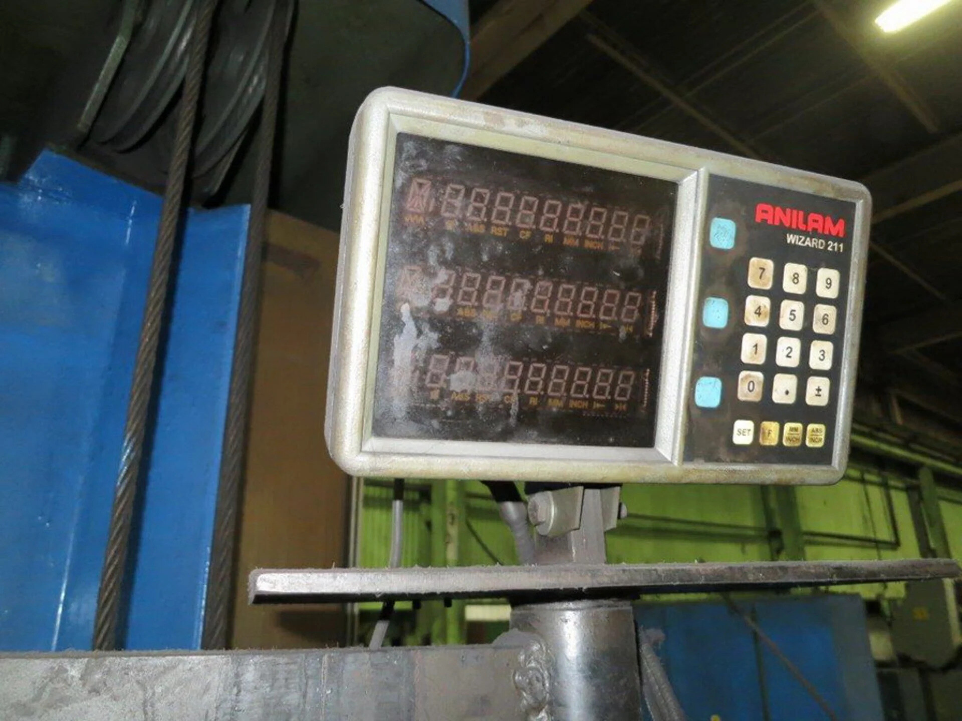 98.4” X 62.9” X 39.3” Horizontal Boring Mill with Anilim 3 - Axis Digital Readout, Pendant Control, 31” Facing Head, Telescopic Bed Way Covers, Coolant System, Threading, Optical Measuring System, (1) T - Slotted Floor Plate and Chip Conveyor.