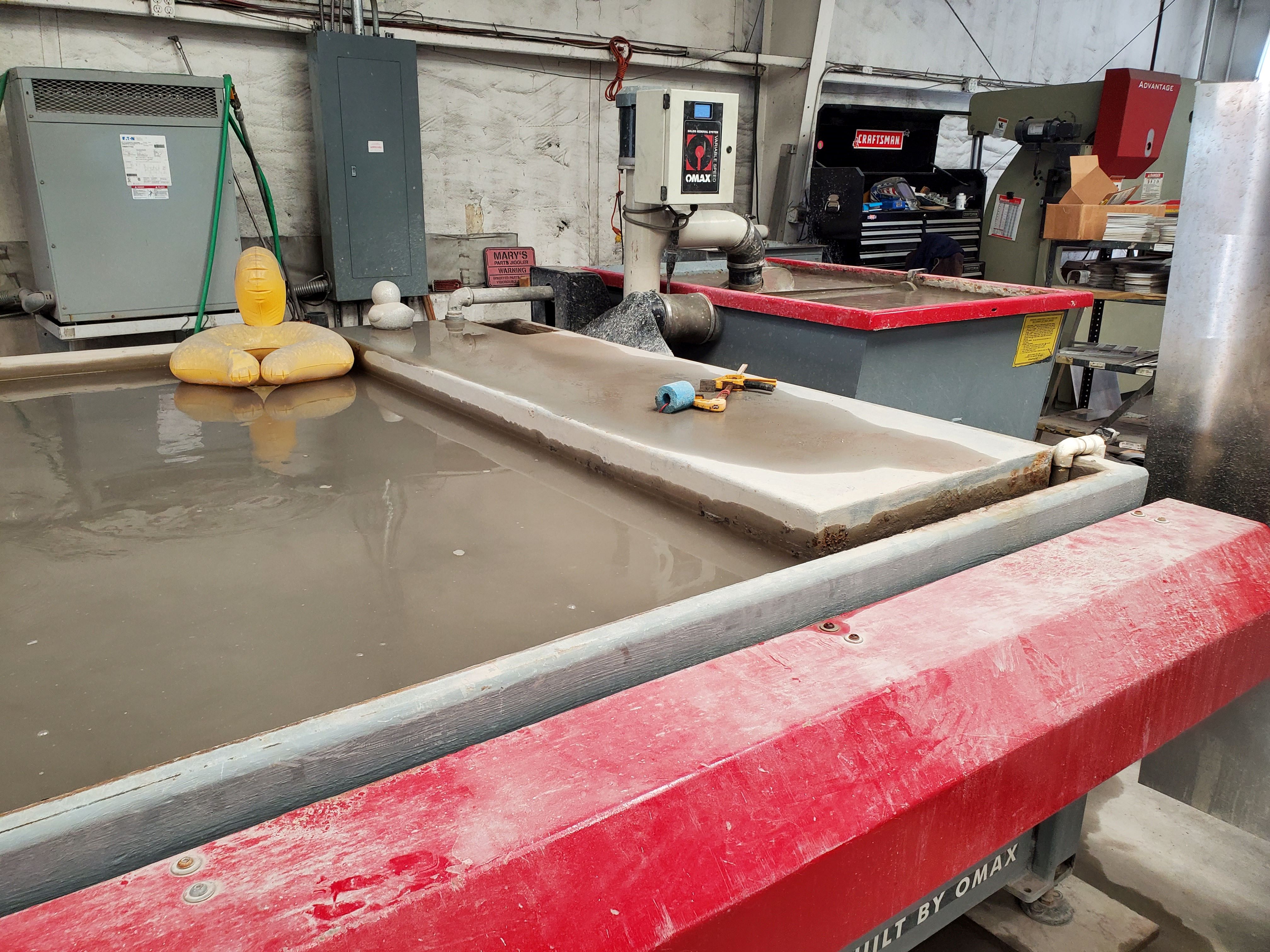INCLUDES: Omax Based PC Control, 40 HP 50 KPSI Direct Drive Pump, Terrain Follower, Water Level Control, 600 Lbs Bulk Abrasive Hopper and Abrasive Removal System.
