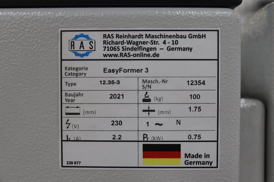 The RAS EasyFormer 3 can be demoed upon request. Check out the video on the listing to see it in operation.