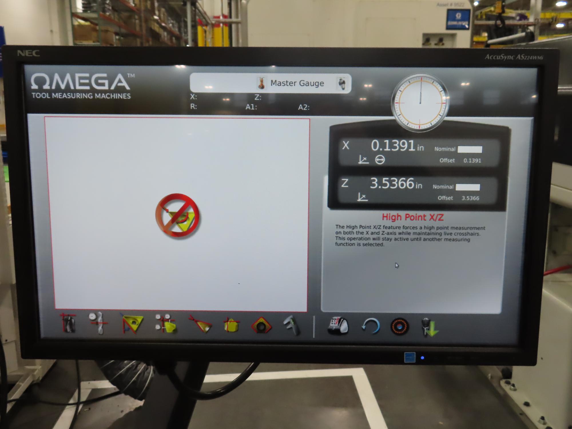 Lot 20: Omega Exactus Tool Setter with 50 Taper Spindle and 40 Taper Adapter Sleeve, Touch Screen Control and MORE!
