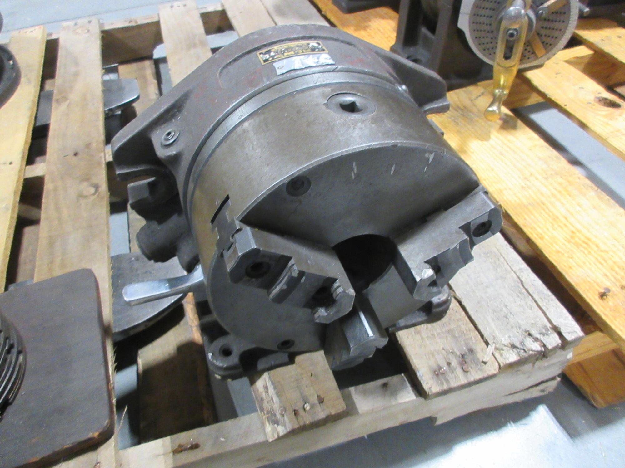 Lot 185: News 8 "Manual Rotary Table w/ 3-Jaw Chuck Vertical/Horizontal Mount & Indexing Adaptor Plates