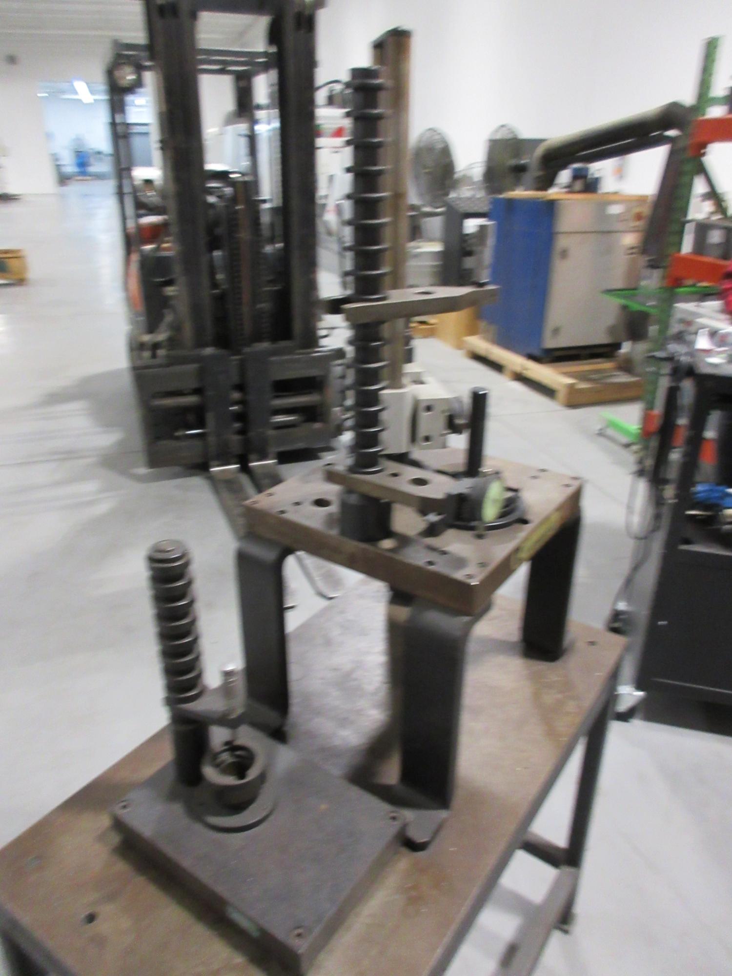 Lot 192: Kennametal Tool Presetting Table On Heavy Duty Steel Table; Starrett Micrometers, Federal Dial Indicators