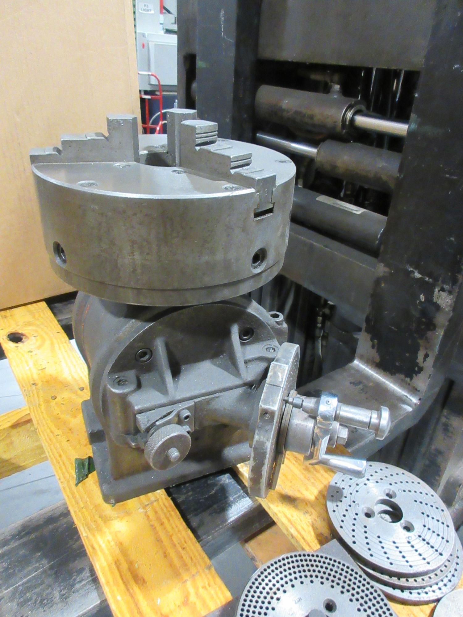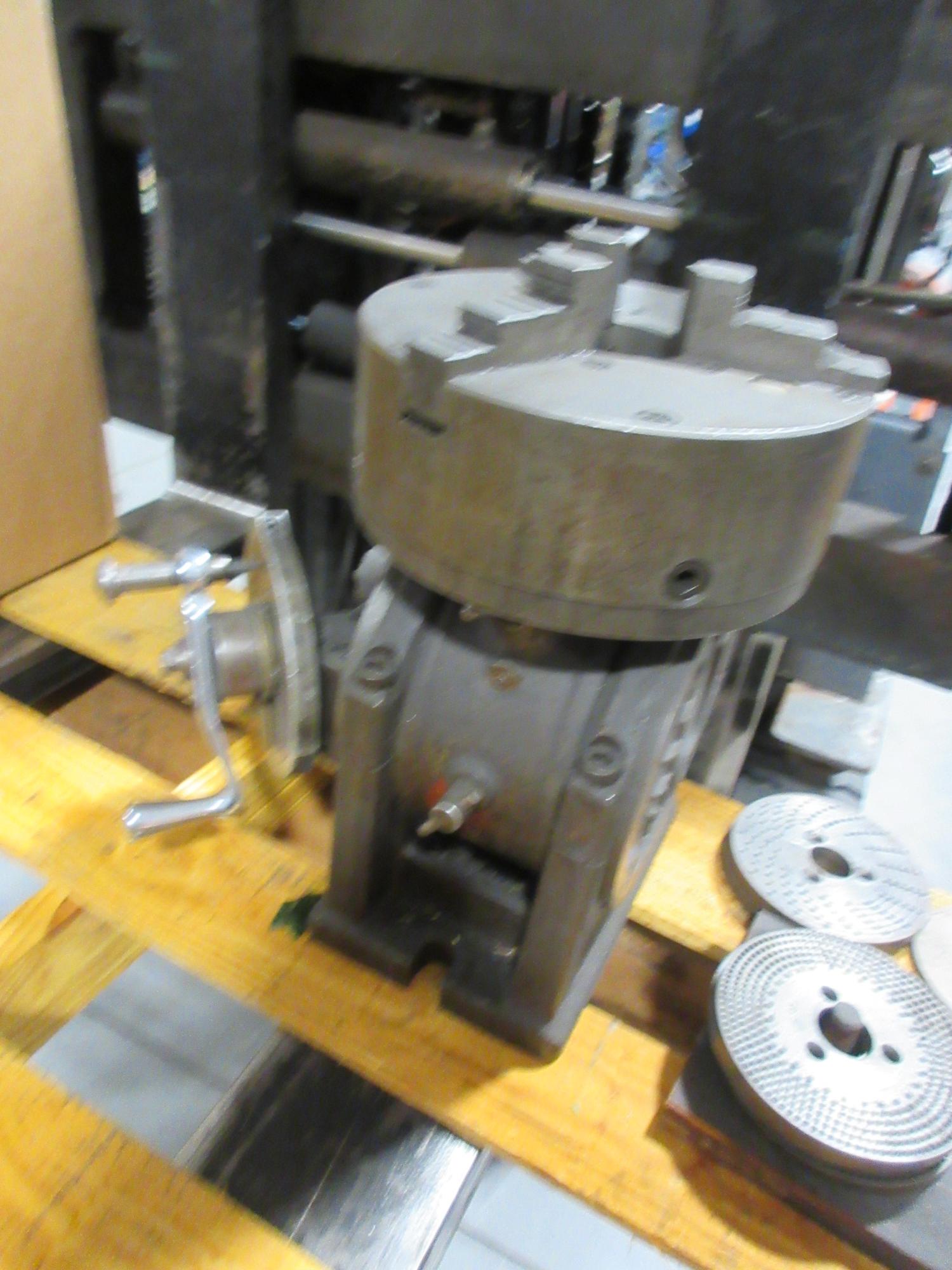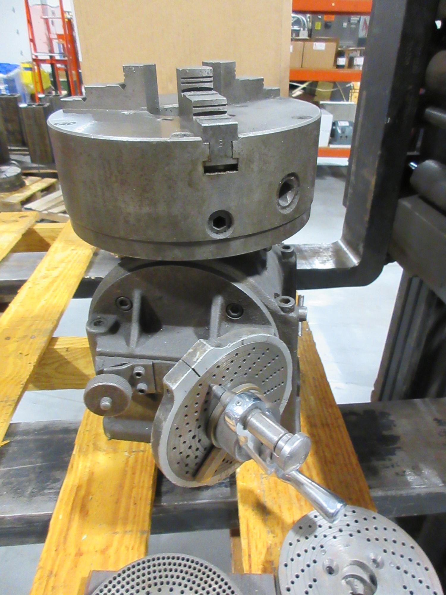 Lot 194: Ellis Double Swivel Dividing Head w/ 9" 3-Jaw Chuck & Dividing Plates