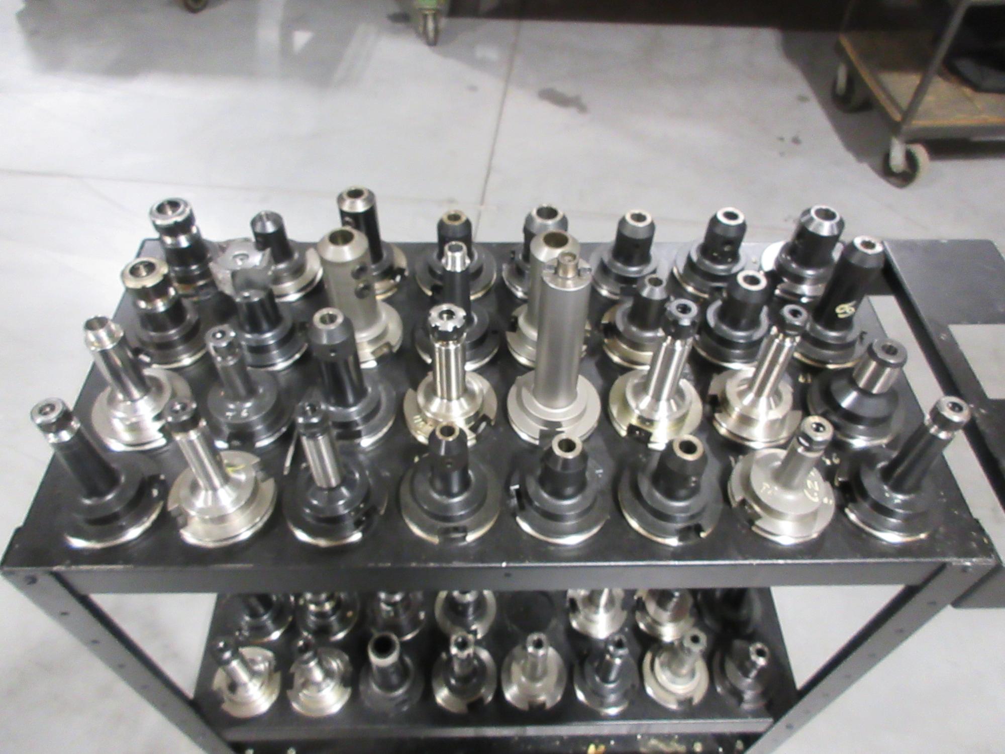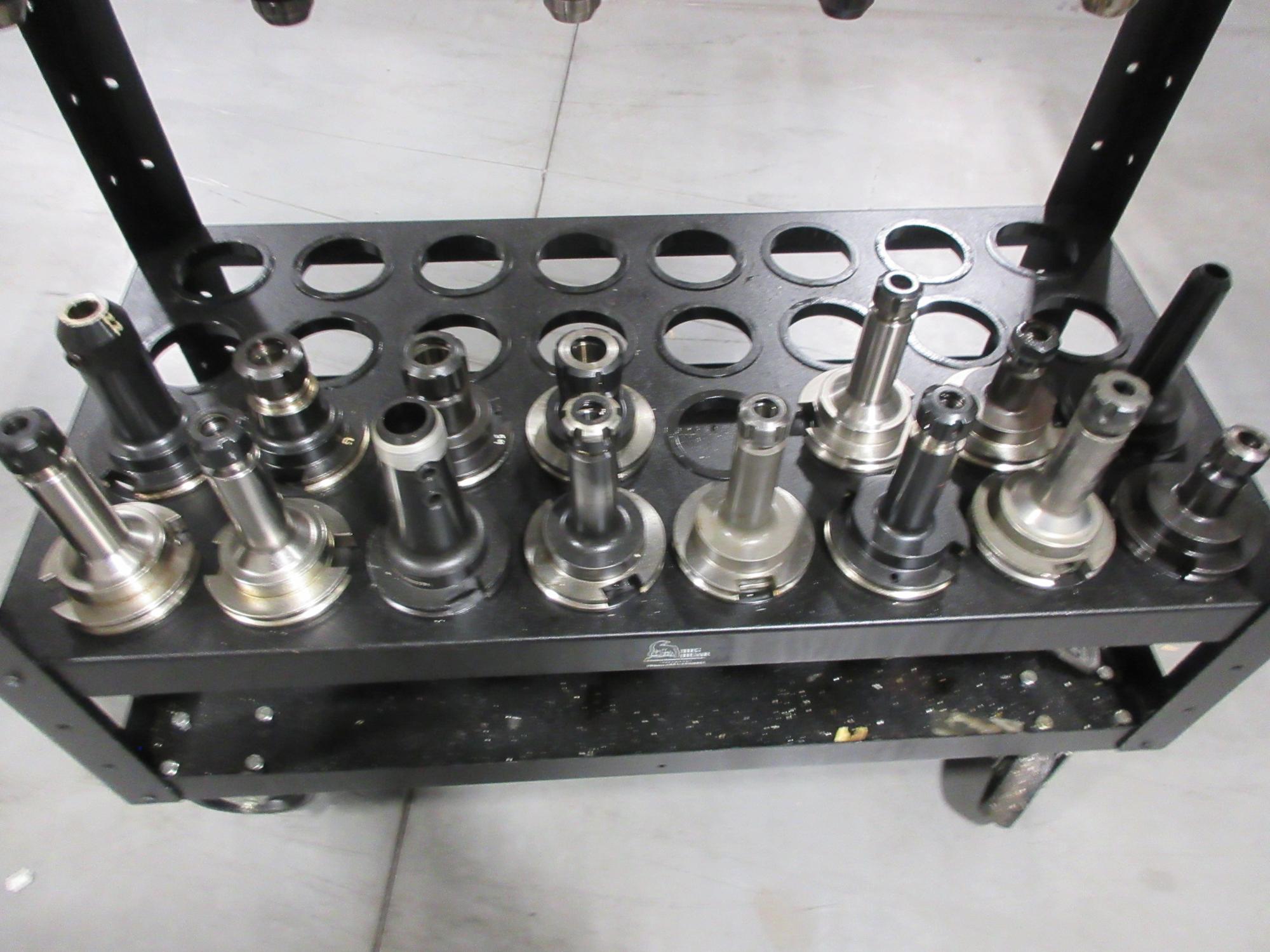 Lot 272: Big Bear Rolling Tool Cart with (64) CAT50 Pockets and (47) CAT50 Assorted Tool Holders