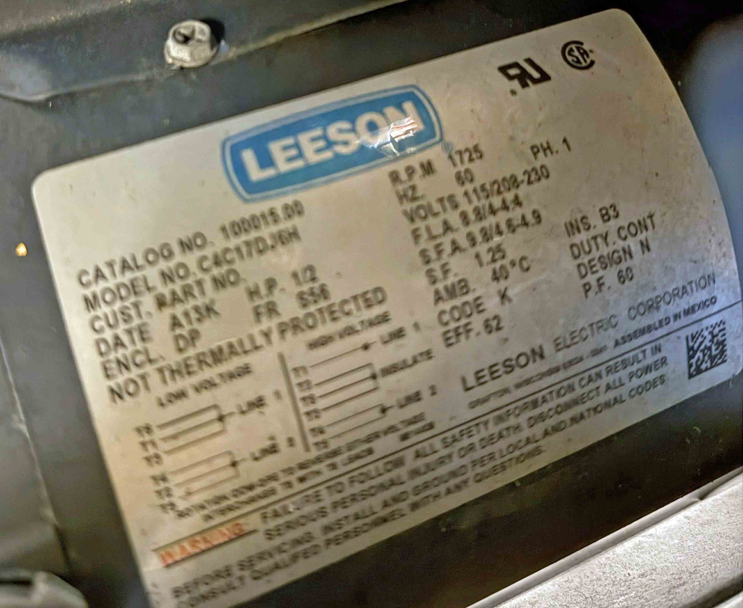 -1/2 HP Leeson AC Motor, Belt Drive