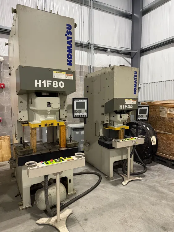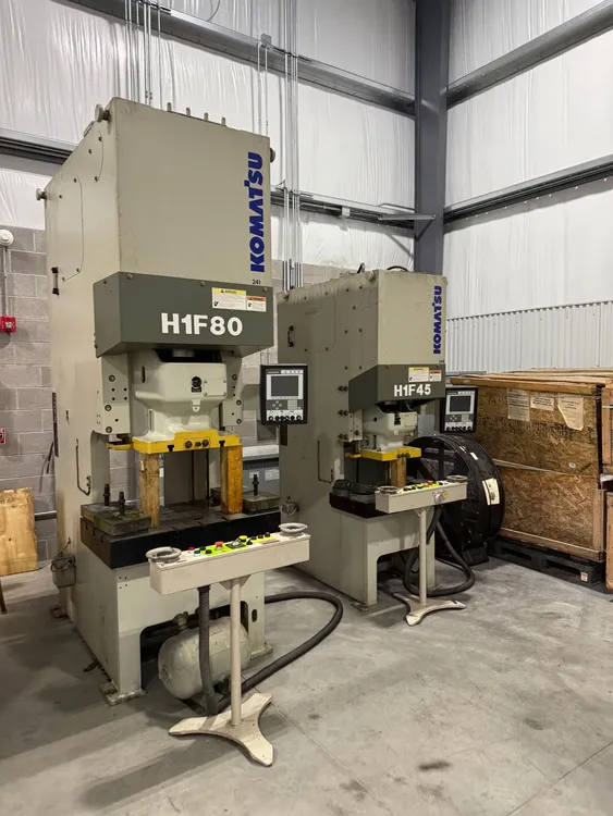 50 Ton, Adjustable 3.94″ Stroke, 9.84″ Shut Height with Servo Motor, Variable Speed, Imagine, total control of slide velocity, multiple stroke depth positions and dwell—all without loss of energy and accuracy in microns. The Komatsu H1F servo press delivers nearly 3 times more working energy than a conventional mechanical press – but consumes over 30% less electrical energy! The H1F series is also available in solid frame design (“O” frame) for applications where angular deflection is critical.