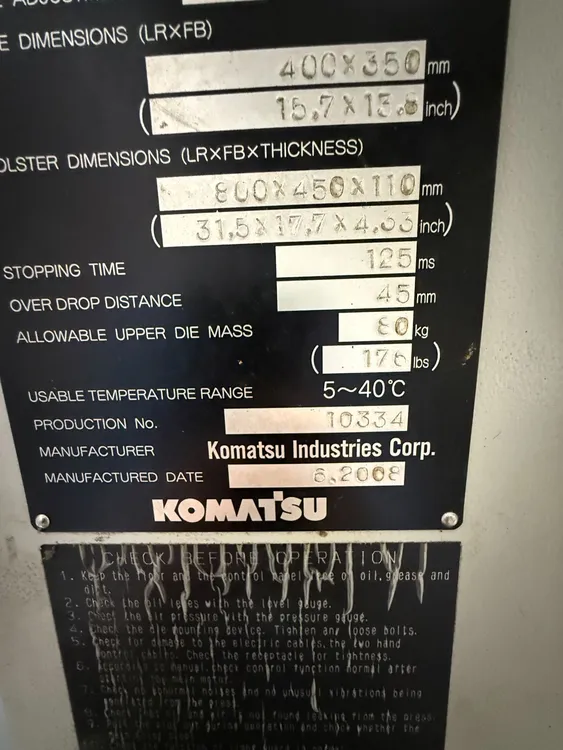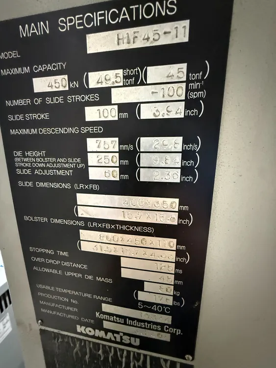 Komatsu H1F45 50 Ton Gap Frame Servo Type Punch Press (2008)