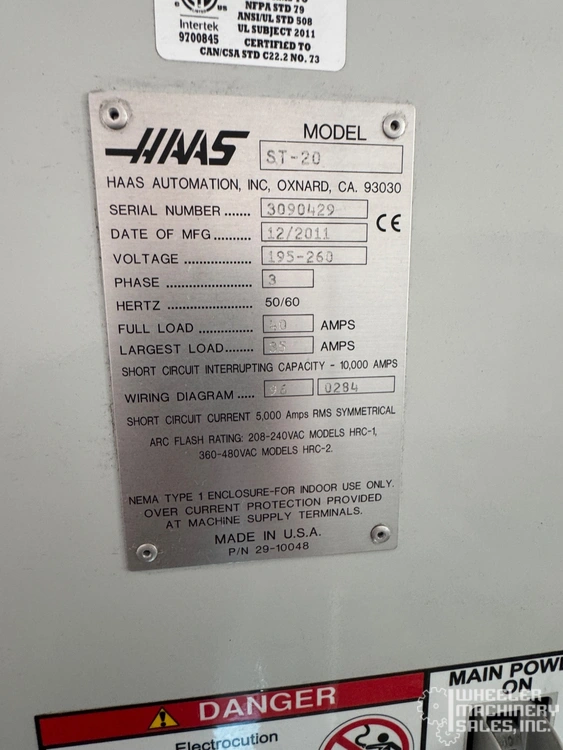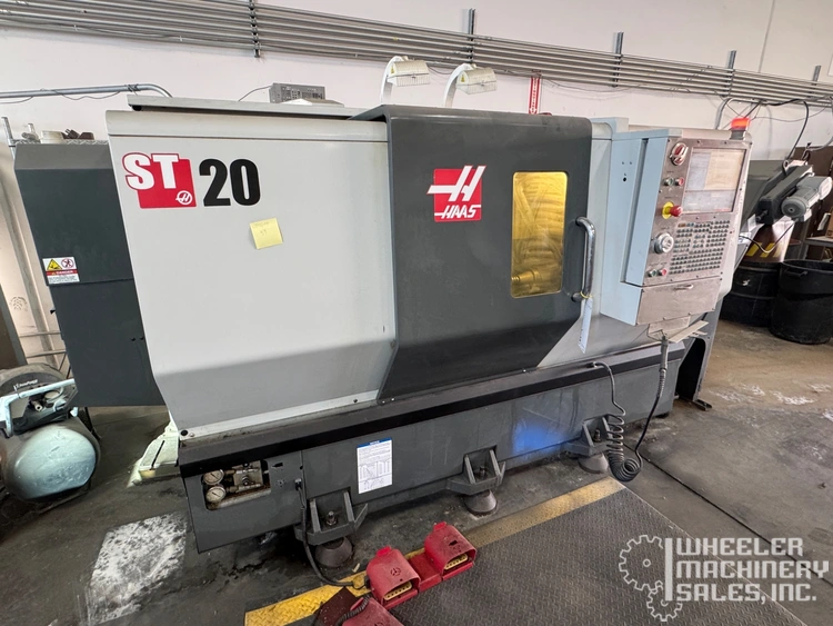 2011 HAAS ST-20 CNC Turning Center available. Features include 9.3" X-axis, 21" Z-axis, 31.75" swing, 15" max turning diameter, 4000 RPM spindle, 12-station turret, Haas control, 8" chuck, chip conveyor, coolant tank, and misc. tooling.