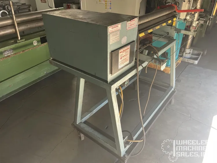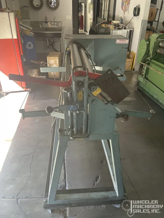 Used NEW DIMENSION MP3.048 Sheet Metal Bending Roll, perfect for 3' x 20 gauge mild steel tasks. Features a 2" roll diameter and 1/2 HP motor at 20 SFPM. Offering a 37" working area with 1/8" pinch roll openings and a 34" working height.