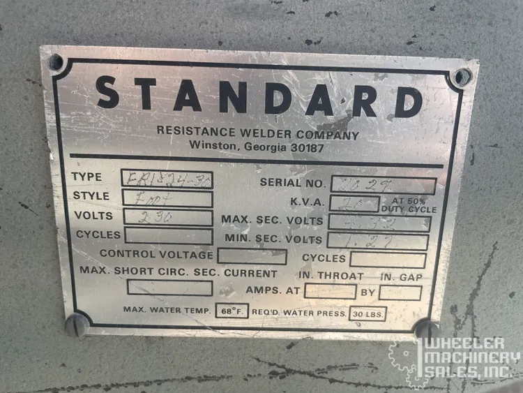 Used STANDARD FRI-24-20 spot rocker arm welder in good condition. Ideal for precise welding applications, this reliable model is built by STANDARD, a trusted name in the industry. Perfect for enhancing your workshop capabilities.