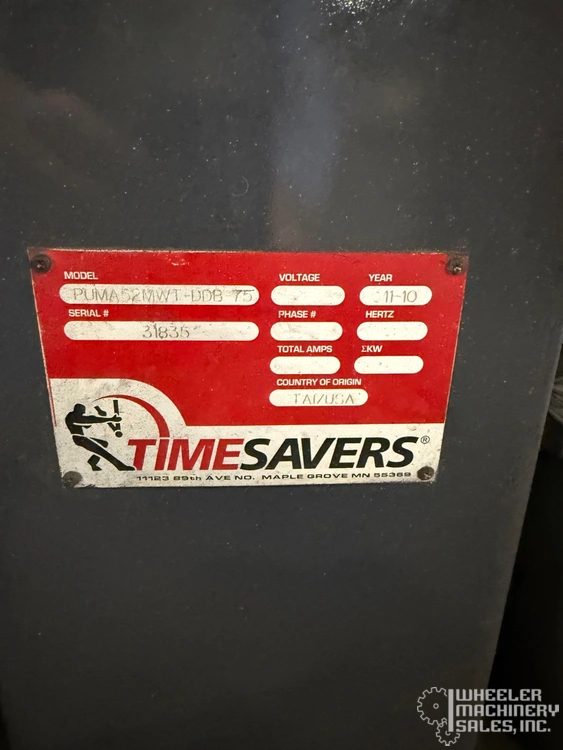 For sale: 2010 TIMESAVERS PUMA 52 MWT-DDB-75 belt grinder in used condition. Ideal for precision grinding tasks. A reliable choice for industrial applications. Contact for details.