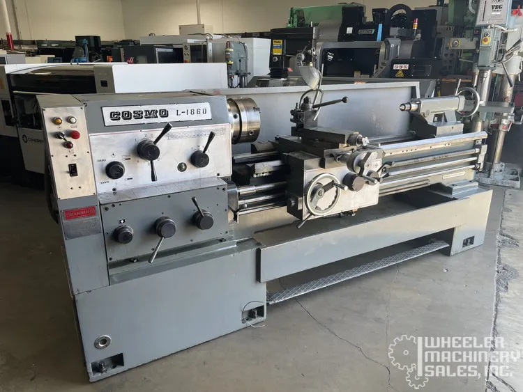 Discover precision with the used COSMO L-1860 Engine Lathe. Featuring an 18" swing over bed, 60" between centers, a 7.5 HP motor, and 12 spindle speeds ranging from 40 to 2000 RPM. Ideal for precise threading in both inch and metric.
