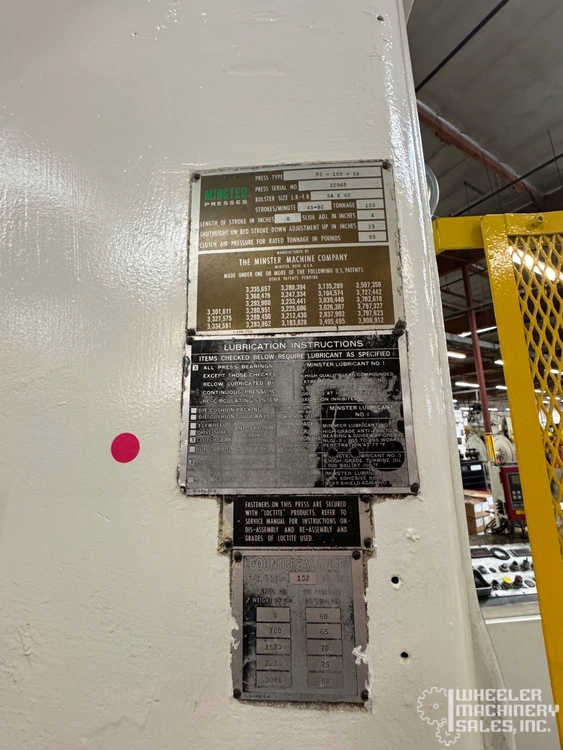 MINSTER P2-150-54, a used straight side double crank press by MINSTER, delivers reliable performance. Ideal for industrial applications, this robust press is a great addition to your manufacturing setup.