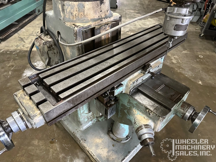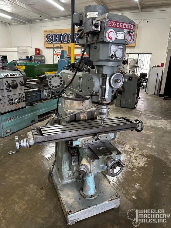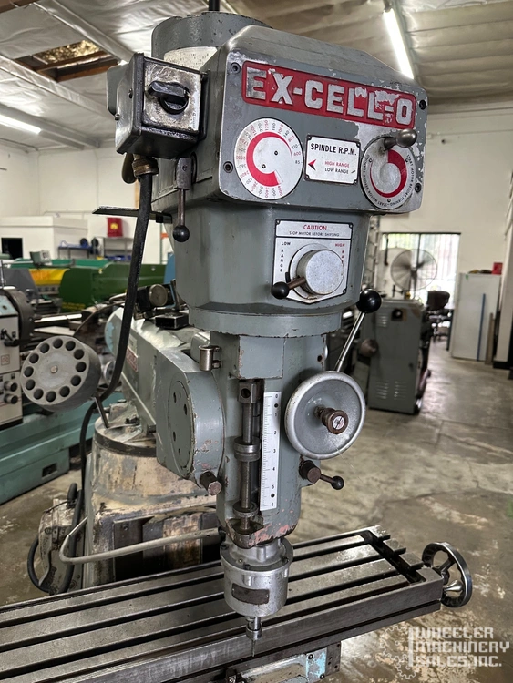 Excello 602 Vertical Mill - 9" x 42" table, 30" longitudinal travel, 16" cross saddle travel, 16" knee travel. Variable spindle speeds (85-4000 RPM), R-8 spindle nose. Features: Variable speed head.,