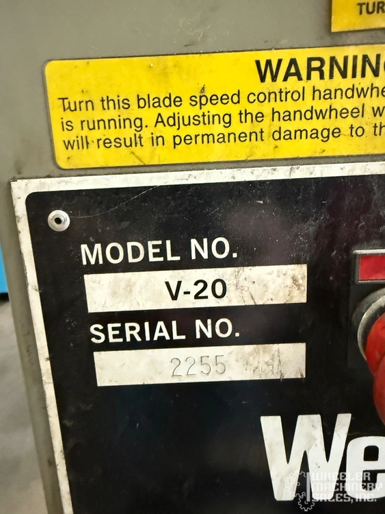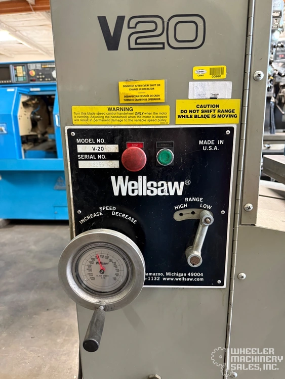 Wellsaw V20 Vertical Band Saw by WELLSAW, model V20, offers a 20" throat and 16" work height. Powered by 3 hp, with a 177" blade length, this used vertical band saw is ready to meet your cutting needs with precision.