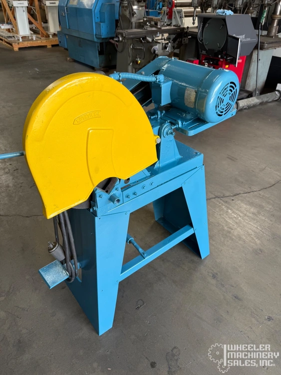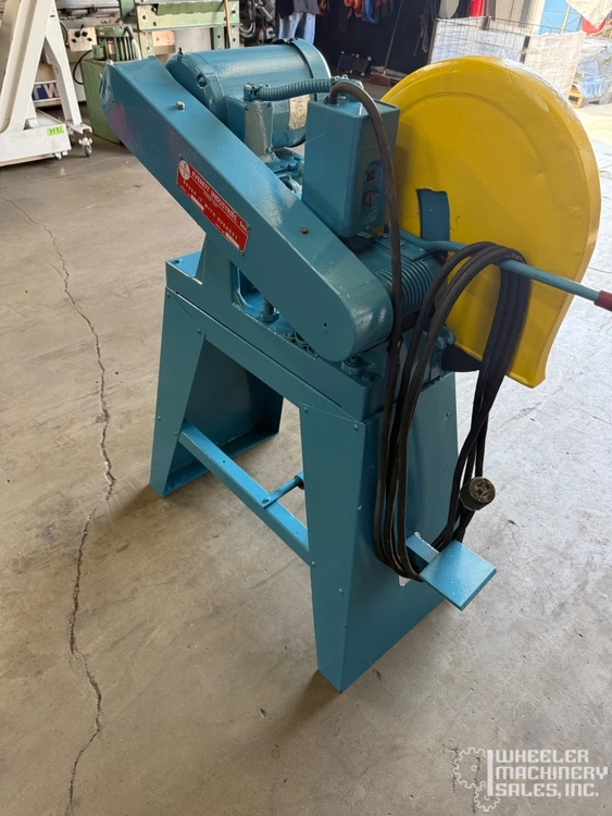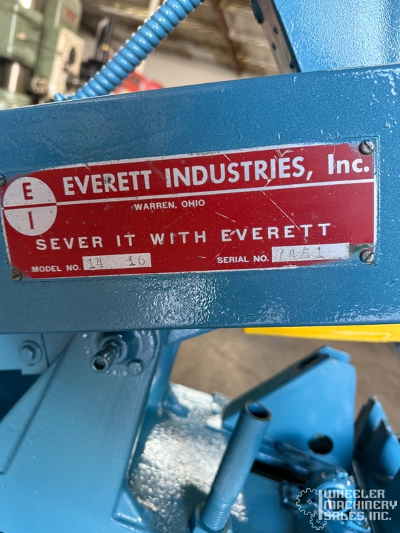 EVERETT 1416 abrasive saw, used condition. Cuts efficiently with 14"-16" wheel, handling solids up to 2" and shapes up to 5". Fast dry cutting speeds: angle iron 2" in 4 sec, pipe 1½" in 3 sec. Ideal for versatile metalwork needs.