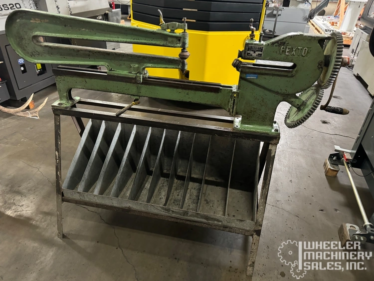 PEXTO 299-C used shear, perfect for precise ring and circle cuts. Handles up to 20-gauge mild steel with cutting depth of 10". Circle capacity 3 1/4" to 42 1/2", weighing 300 lbs. Ideal for industrial and workshop applications.