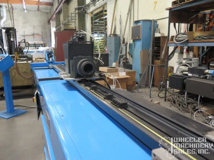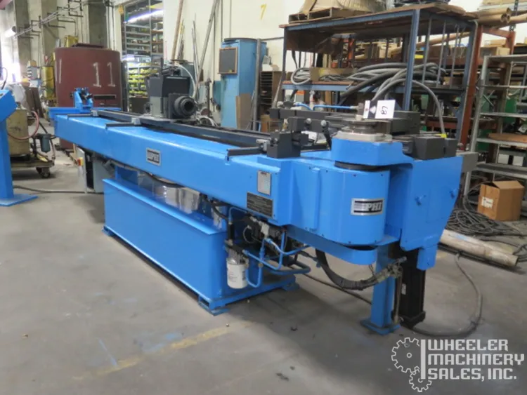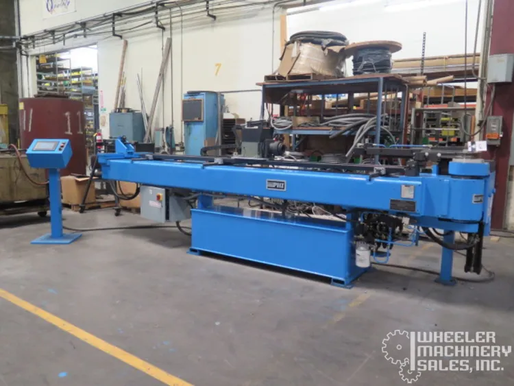 2007 PHI 233R1ABCDE-256 CNC Tube Bender, used, with a 3" tube and 2" pipe capacity. Features touch screen 233 CNC control and clockwise bend. Compact design at 18' long, 73" wide. Perfect for precise bending needs.