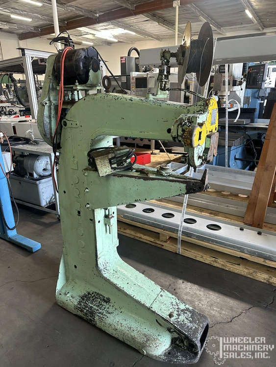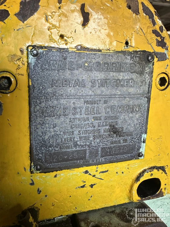 Acme Morrison N3A Flat Book/Saddle Stitcher #7215 available in used condition. Features a 7/16" to 3/4" stitch width, maximum thickness, foot operation, saddle stitching platform, and 120V power. Ideal for versatile book-binding needs.
