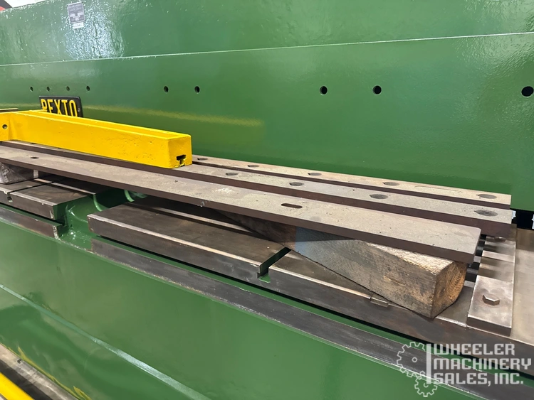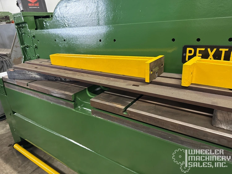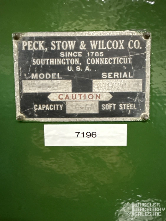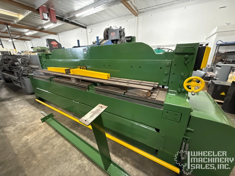 Pexto 10-U-10 Mechanical Power Squaring Shear available: 10' x 10 Ga. capacity. Features include squaring arm, 2 sheet supports, and rear operated back gauge. Specs: 10 Ga. mild steel, 12 Ga. stainless, 60 strokes/min, 7.5 HP motor, 3 Phase, 220/440V.