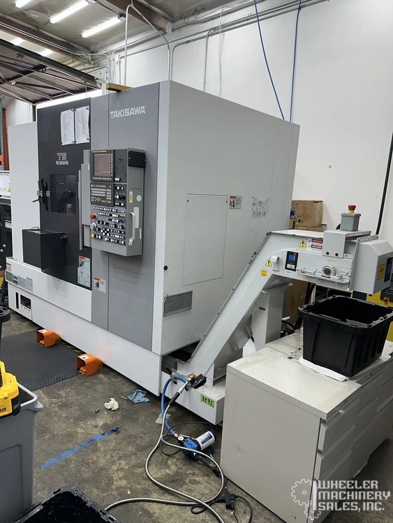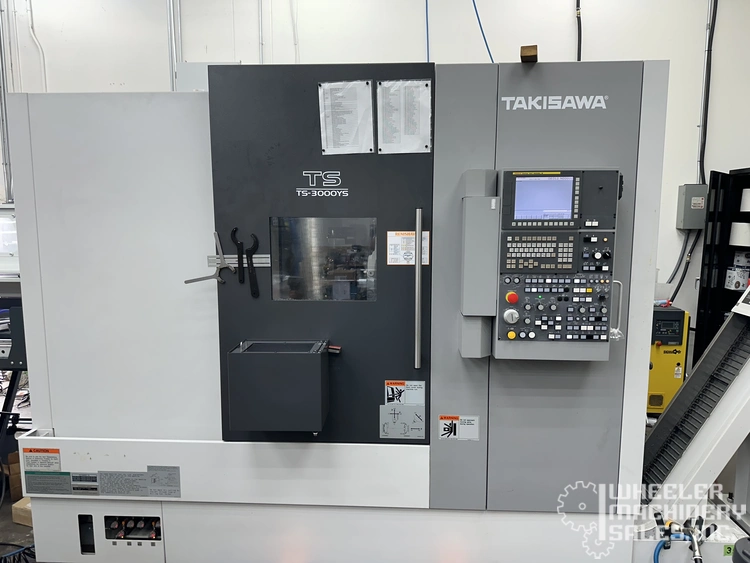 Explore precision with the 2022 Takisawa TS-3000 YS Multi Axis CNC Lathe, featuring a FANUC 32i controller, 6000 RPM counter spindle, and Renishaw probing. Equipped with an LNS bar feeder, chip conveyor, and part catcher, it handles complex machining tasks.