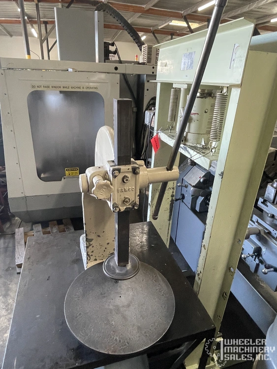 Powerful used Famco 3-1/2 Ratcheting Arbor Press delivers 5-ton force. Ideal for tasks with max 18” diameter, featuring 17.5” capacity over table, and 70-1 leverage ratio. Rugged build with 550 lbs weight ensures stability and precision.