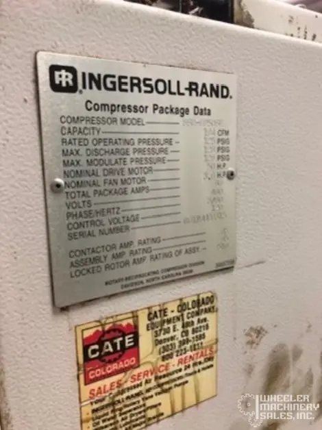 Ingersoll Rand SSR-EP50SE Rotary Screw Air Compressor #6890 offers 194 CFM and 125 PSIG with a 50 HP motor. Used unit, 230/460 volts, approximately 2,500 lbs. Dimensions: 60" L x 52" W x 80" H. Reliable performance in a compact package.
