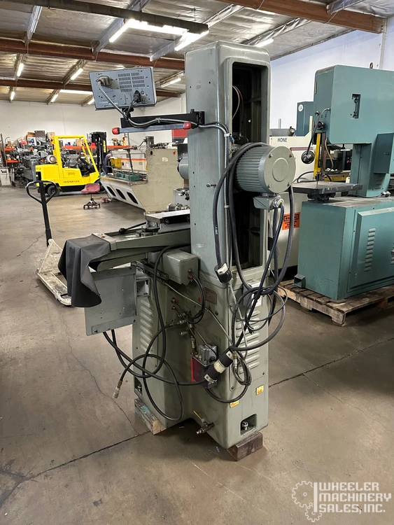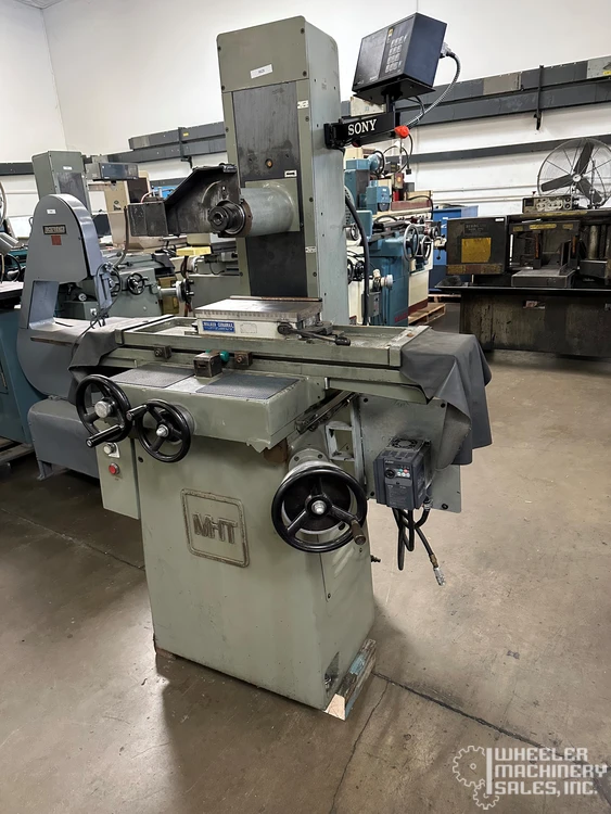 Mitsui 200MH Precision Hand Feed Surface Grinder, 6” x 12”, features a Walker magnetic chuck, Sony digital readout, programmable speed control, and auto lube system. 1.3 Hp, 3,450 RPM max, 200 lbs table load, 15” table travel. Ideal for precise grinding tasks.