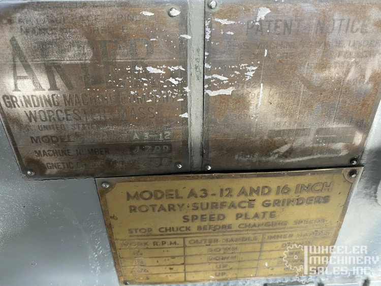 ARTER A3-12 HORIZONTAL-SPINDLE ROTARY SURFACE GRINDER 12" #6103 #1