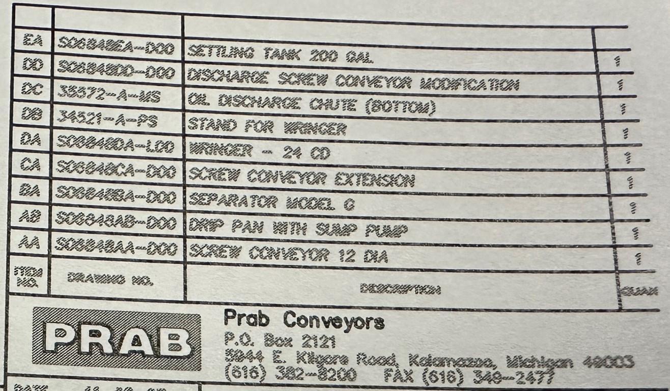 Prab Model G Blower Separator