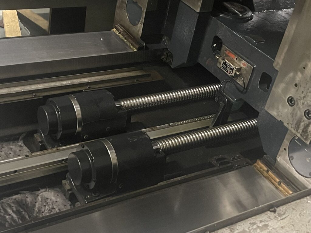 This machine has been professionally refurbished. Work includes: Turcite replacement, including scraping, assembly, & alignment of X, Y, & Z axes; Rebuilding of ball screws for Y-axis & Z-axis; Regrind of precision casting surfaces; lube line replacement as necessary; wiper and rubber gasket replacement; replacement of auger bearings and seals; run-out and alignments verified after reassembly.