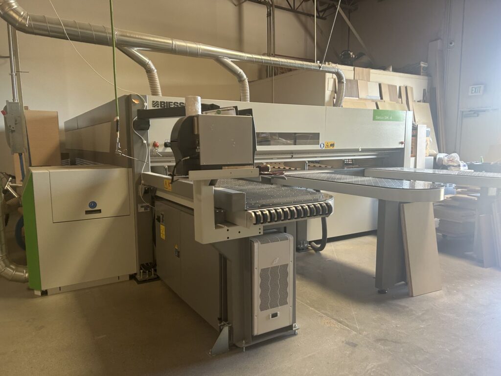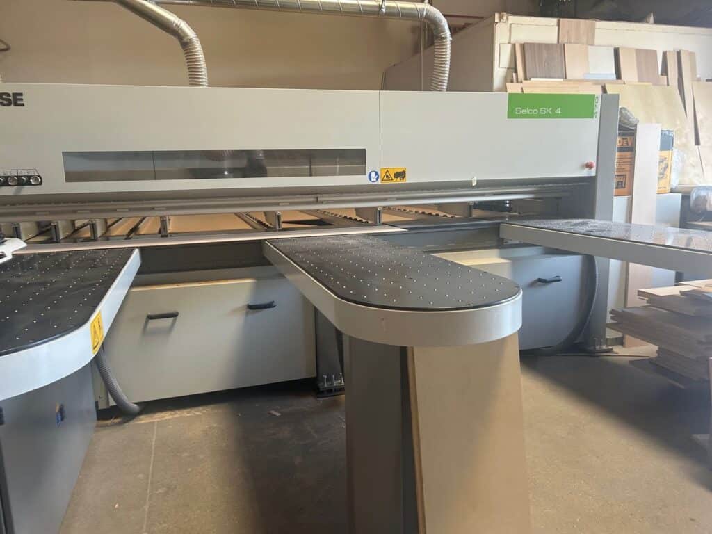 TwinPusher features a saw blade through top vibration-free, sprocket drive and spiral shaped toothrack for linear movement of the floating tool holder slide, automatic regulation protrusion main saw blade through numeric control, stop for side alignment integrated in the saw carriage, reduction of feeding times, Digiset-device for electronic regulation of the prescorer, patented quick-changing tool system for the saw blade change, miscellaneous solutions for panel loading and deloading, control OSI, optimisation software OptiPlanning and Quick Opti, labelling and Barcode-Scanner. Options include PFS-function, system for performing to groove, flotation table, software for inboard sections with panels, automatic prescoring for diagonal cuts, grippers with special stops. The beamsaw can be linked in production lines with different plants, such as e.g. Winstore.