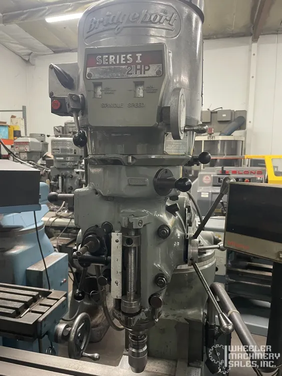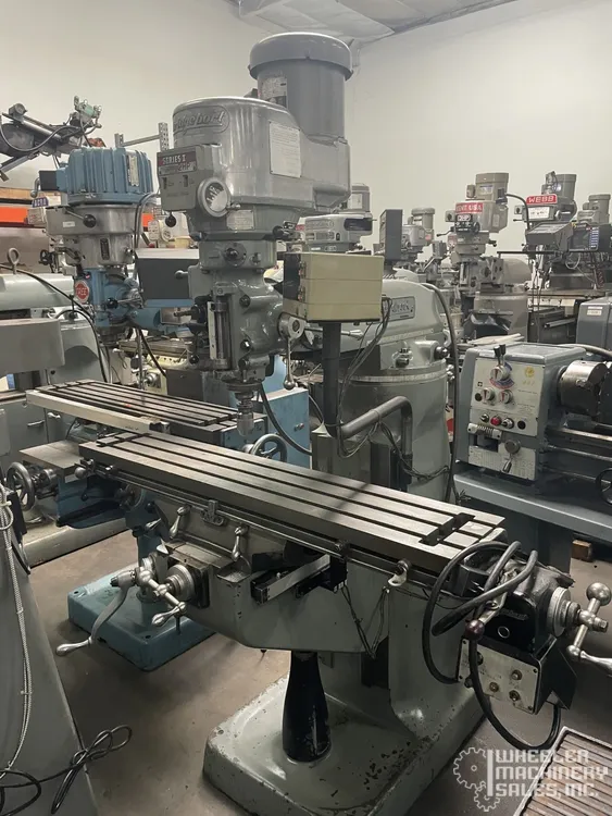 For sale: Used Bridgeport Series 1 Variable Speed Milling Machine with 9" x 49" table. Features R8 collet, 2 HP motor, variable spindle speeds from 60 to 4200 RPM, and 220/440V electrics. #8116 #1