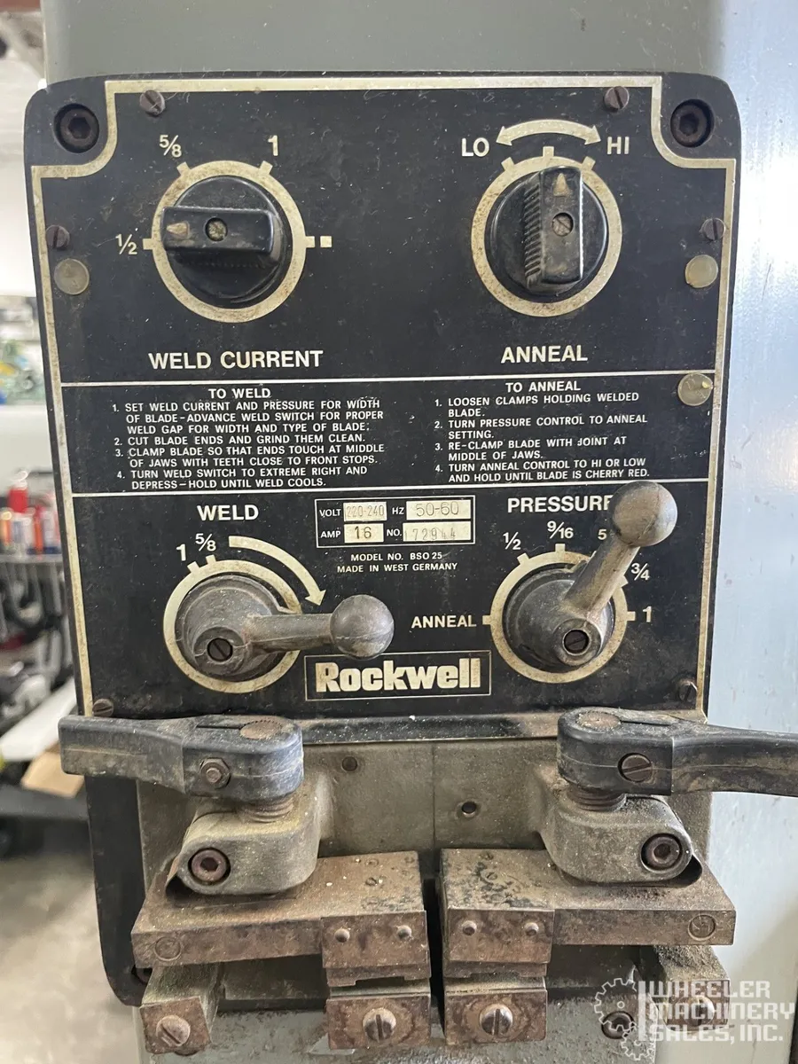 ROCKWELL Model 28-3X5 Vertical Band Saw. 12" x 20" cutting capacity, 50 to 4500 FPM, suitable for various cutting tasks. Used condition, equipped with a 1/2" blade. Perfect addition for any workshop needing reliable and efficient sawing capabilities.