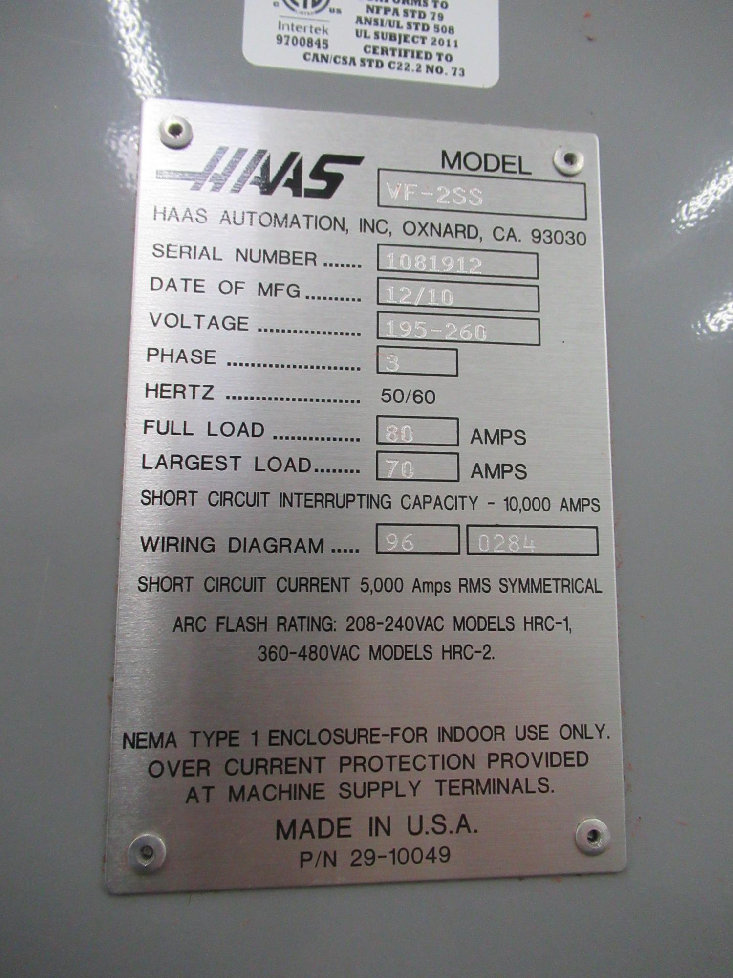 Haas Maincon CNC Control, 24-Station Side Mount Twin Arm Automatic Tool Changer, 12,000 Max RPM, CT 40 Spindle Taper, Renishaw Probing System with Part Probe and Tool Setter, Chip Auger, Coolant Tank and Pump, 750MB Expanded Memory, High Speed Machining, Rigid Tapping, USB Port. ONLY 2,638 Spindle Hours