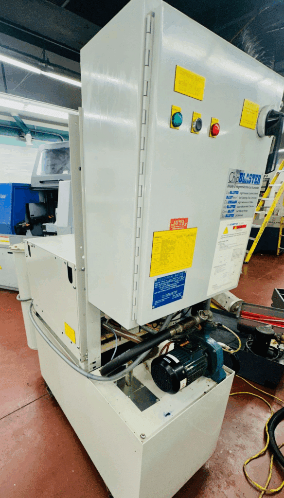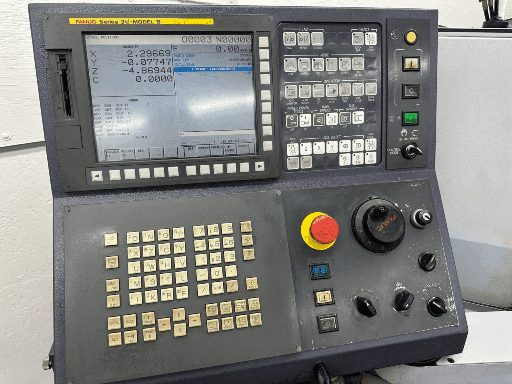 Fanuc 31i-B CNC Control, LNS Alpha ST320 SE Magazine Barfeed, Chip Blaster High Pressure Coolant Unit, Tri-Mist 850 G2 Mist Collector, Parts Catcher & Conveyor