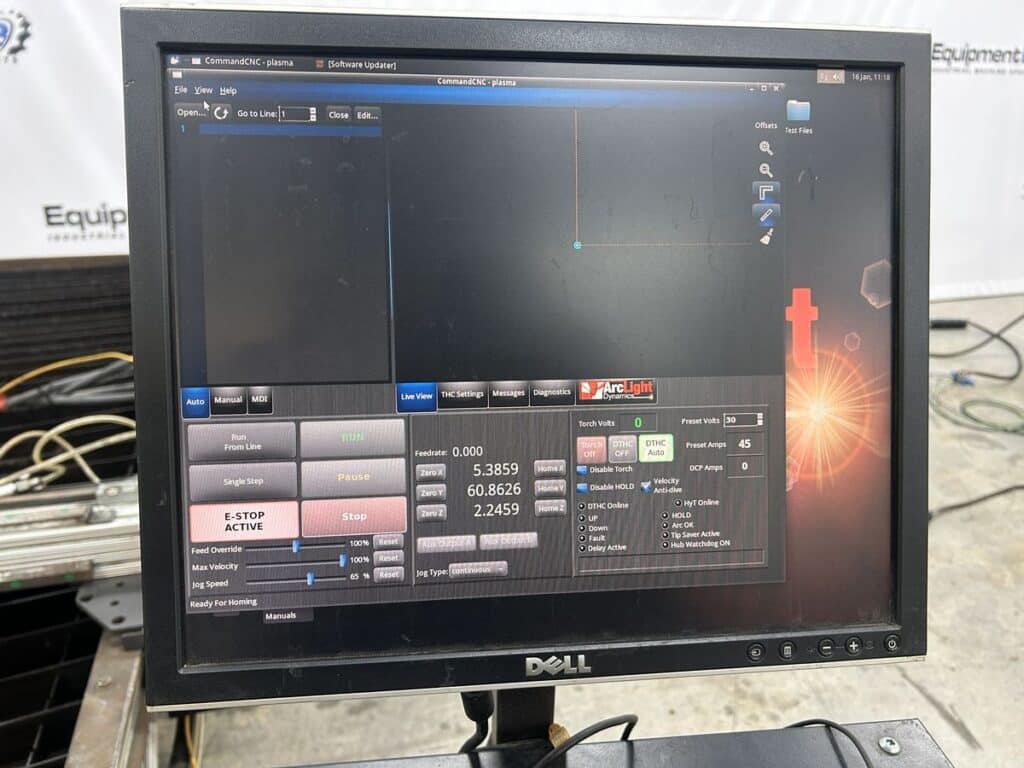 The coms converter component went bad that is needed for the controller to properly communicate with plasma cutter to operate and the part is no longer supported through ArcLight. Being sold as a parts machine to either figure out how to fix problem, upgrade to a new controller through ArcLight or retrofit with new system. Table itself and components still operate as they should.