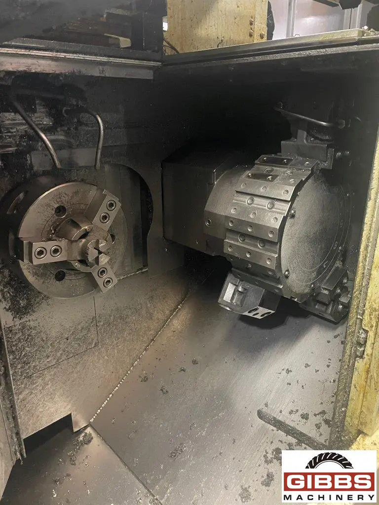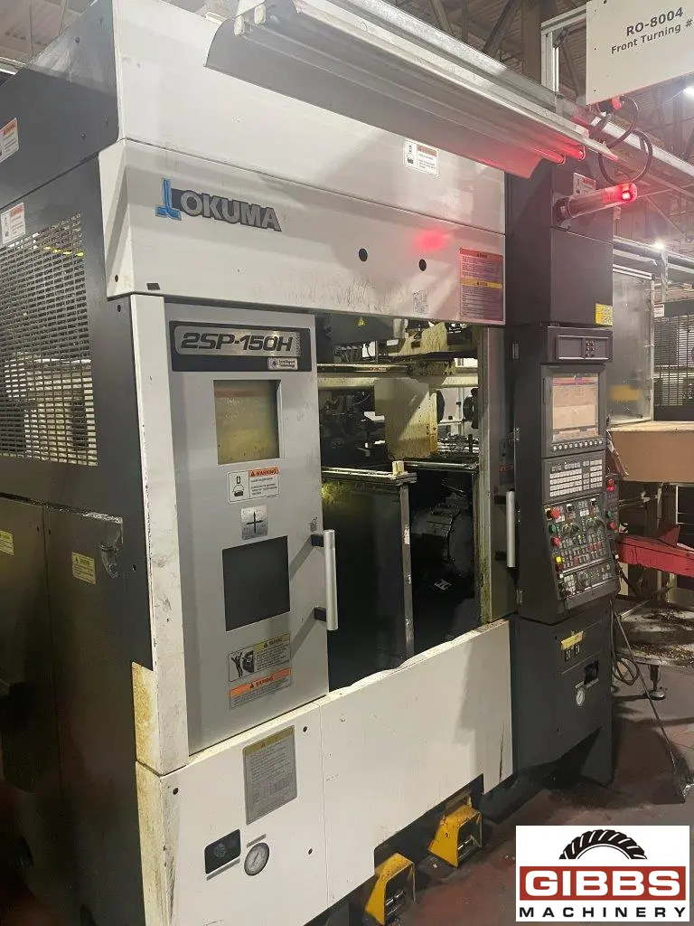 The innovative front-facing spindle of the 2SP-150H helps create an automation-friendly lathe for small parts production. By moving the spindle off the side and incorporating the Okuma Gantry Loader (OGL) into the production line, parts can be loaded and unloaded automatically. An extremely compact footprint improves floor space utilization, while the popular dual spindle option significantly reduces cycle time.