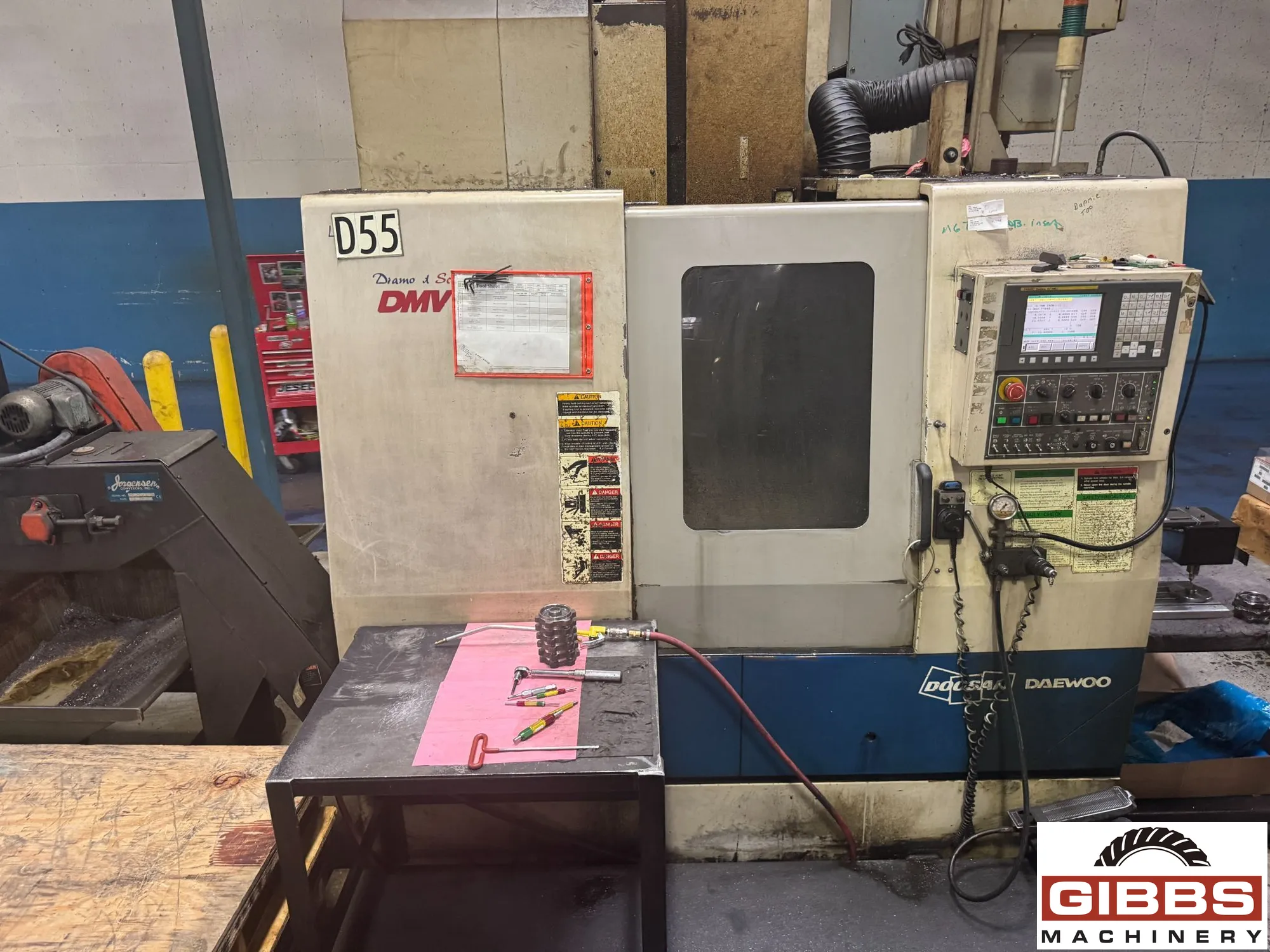 The DOOSAN DMV-3016L is a vertical machining center (VMC) known for its precision, efficiency, and versatility in manufacturing. It's designed for a wide range of machining operations including milling, drilling, and tapping, catering to industries like automotive, aerospace, and electronics. The DMV-3016L features a robust design, advanced technology, and high-speed capabilities, allowing it to handle complex tasks and produce components with accuracy.