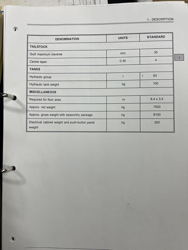 WEIGHT BETWEEN CENTERS .................. 220 LB