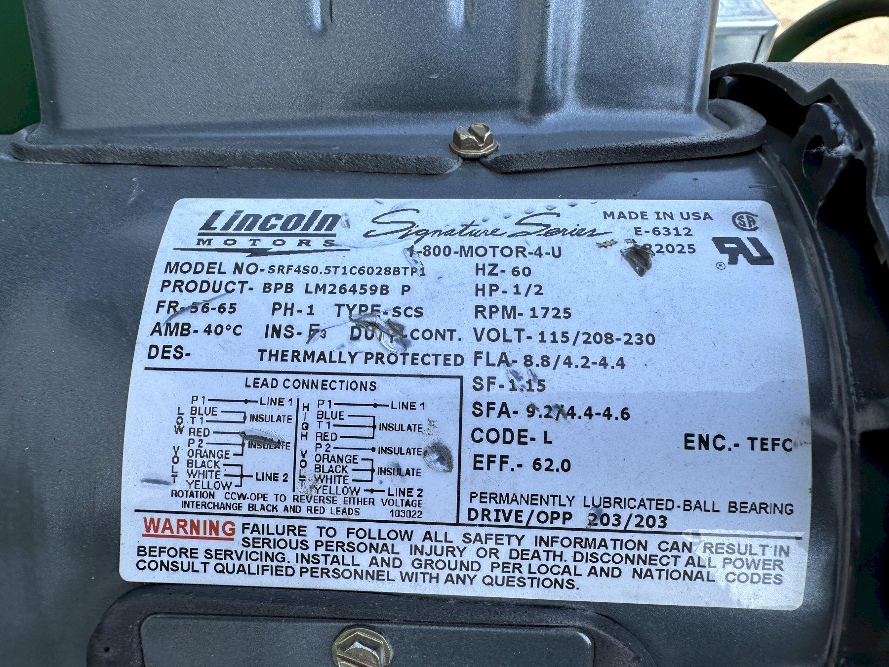 MOTOR horsepower .................................... 1/2