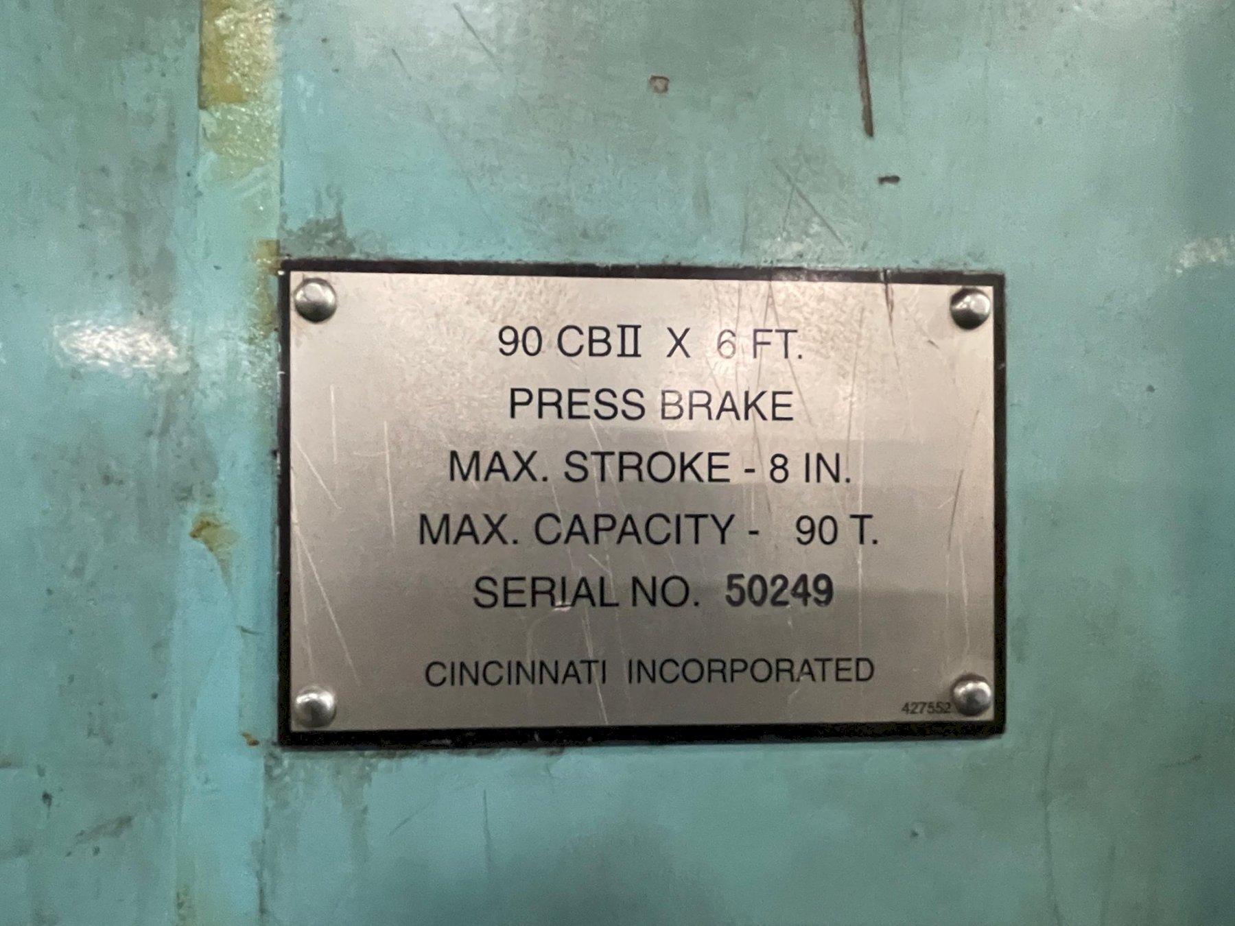 90 TON X 6' CINCINNATI HYDRAULIC PRESS BRAKE: STOCK #76649